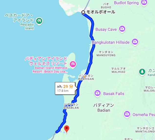 『モアルボアル』へはバイクで3時間弱、休憩を挟みつつゆっくり走ると4時間ほどの距離だ。何よりも陸続きというのがありがたい。セブから島に渡ると、飛行機にしても船にしても、天候による遅延のリスクを伴う。その点、モアルボアルはひたすら陸を走ればいいため、どんな天気だろうと最後は自分の気合でどうにでもなるという安心感がある(笑)。